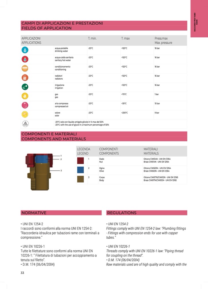 Fittings comply with UNI EN 1254-2 law: "Plumbing fittings
