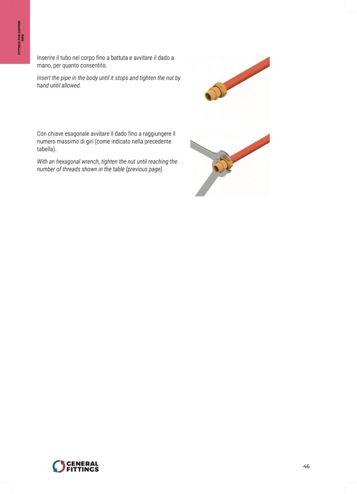 Inserire il tubo nel corpo fino a battuta e avvitare il dado a