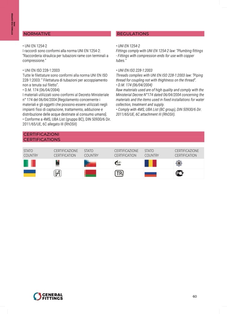 Fittings comply with UNI EN 1254-2 law: "Plumbing fittings
