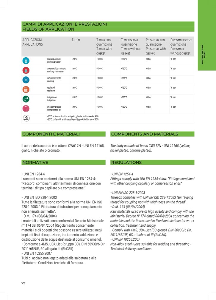 Tutte le filettature sono conformi alla norma UNI EN ISO
