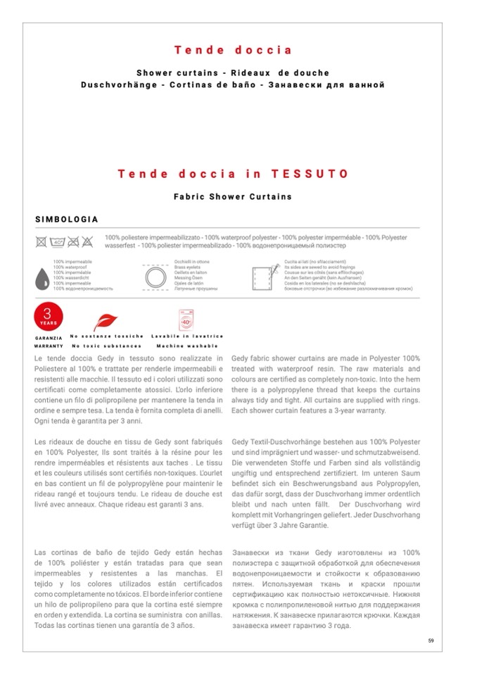 Les rideaux de douche en tissu de Gedy sont fabriqués