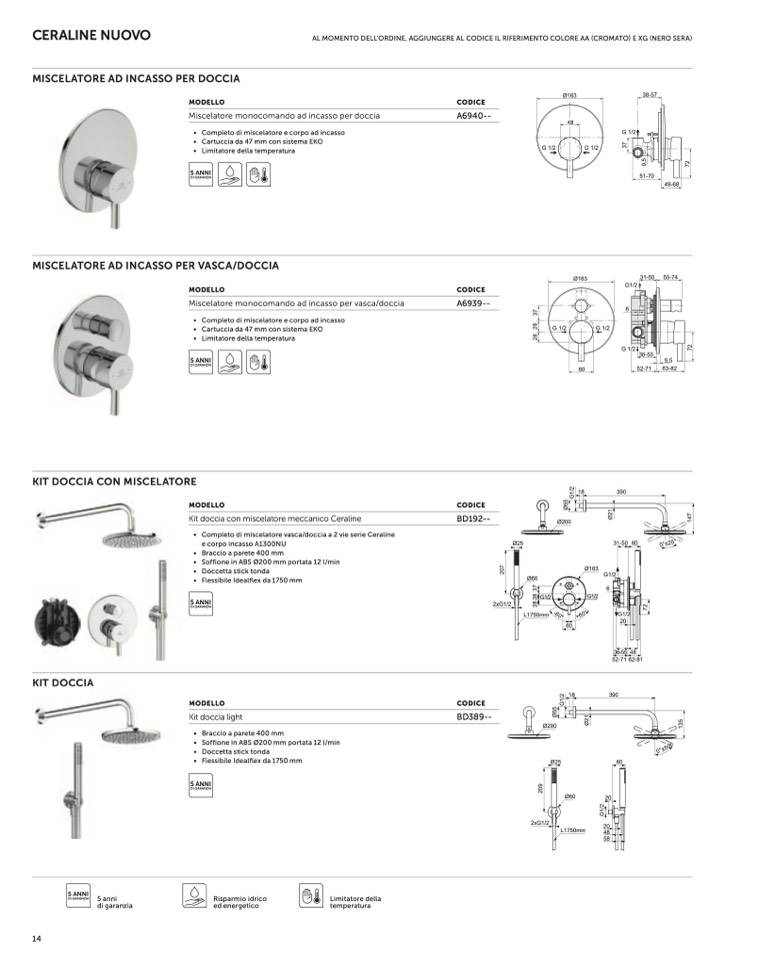 MISCELATORE AD INCASSO PER DOCCIA