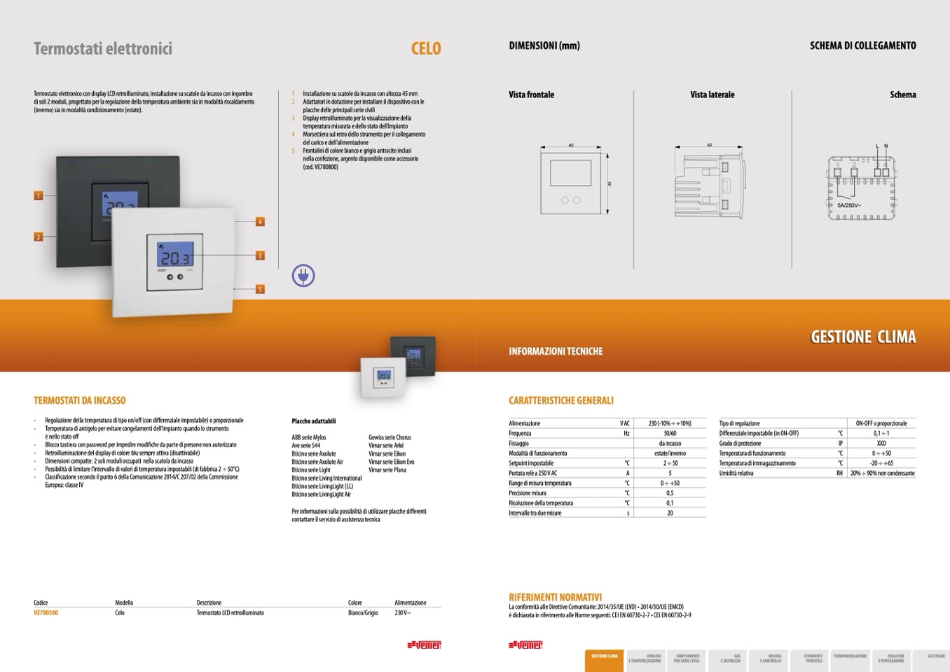 di soli 2 moduli, progettato per la regolazione della temperatura ambiente sia in modalità riscaldamento