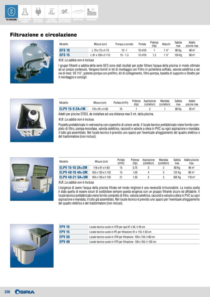pleto di filtro, pompa monofase, valvola selettrice, raccordi e valvole a sfera in PVC su ogni aspirazione e mandata;