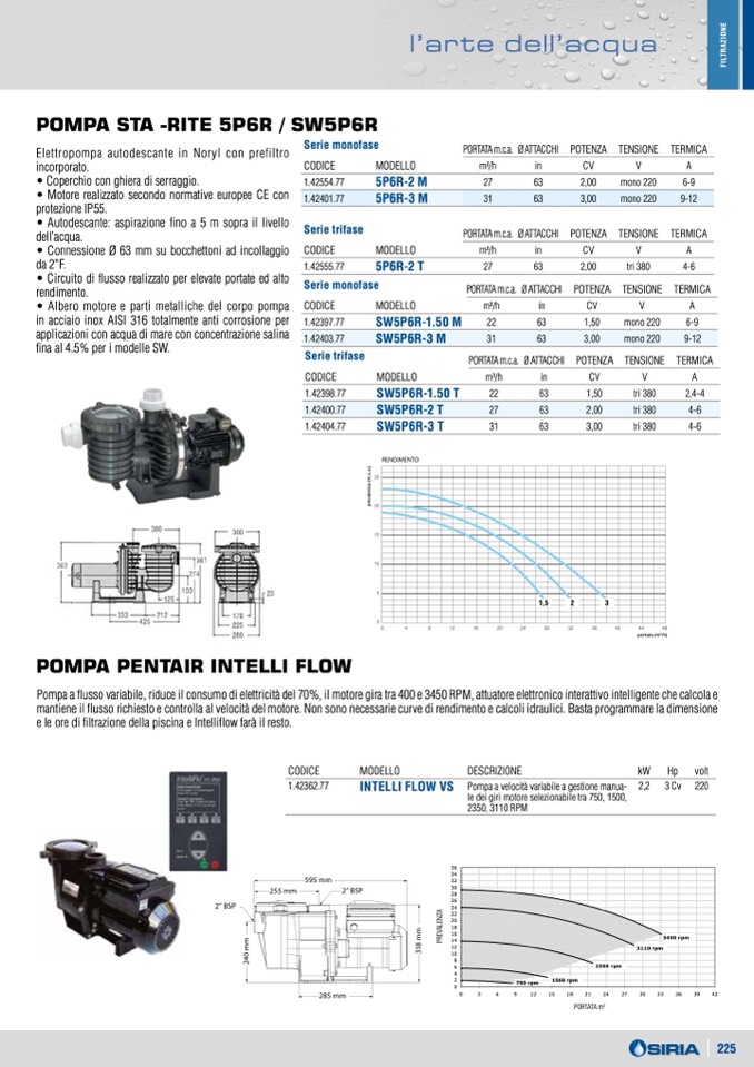 Pompa a flusso variabile, riduce il consumo di elettricità del 70%, il motore gira tra 400 e 3450 RPM, attuatore elettronico interattivo intelligente che calcola e