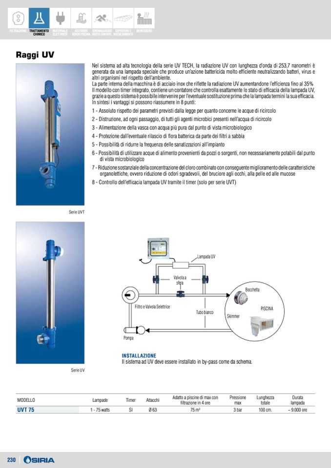 Il sistema ad UV deve essere installato in by-pass come da schema.