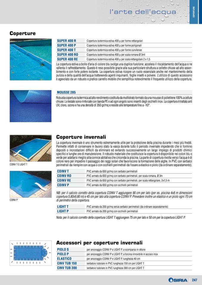 NB: per il calcolo corretto della copertura COINV T aggiungere 90 cm per lato (per es. piscina 4x8 m dimensioni