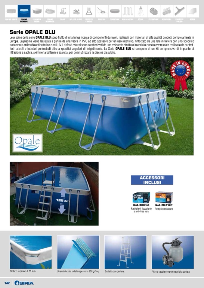 forti laterali e tubolari perimetrali oltre a specifici angolari di irrigidimento. La Serie OPALE BLU si compone di un kit comprensivo di impianto di