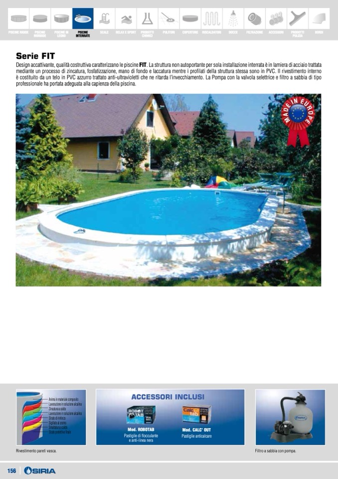 Design accattivante, qualità costruttiva caratterizzano le piscine FIT. La struttura non autoportante per sola installazione interrata è in lamiera di acciaio trattata