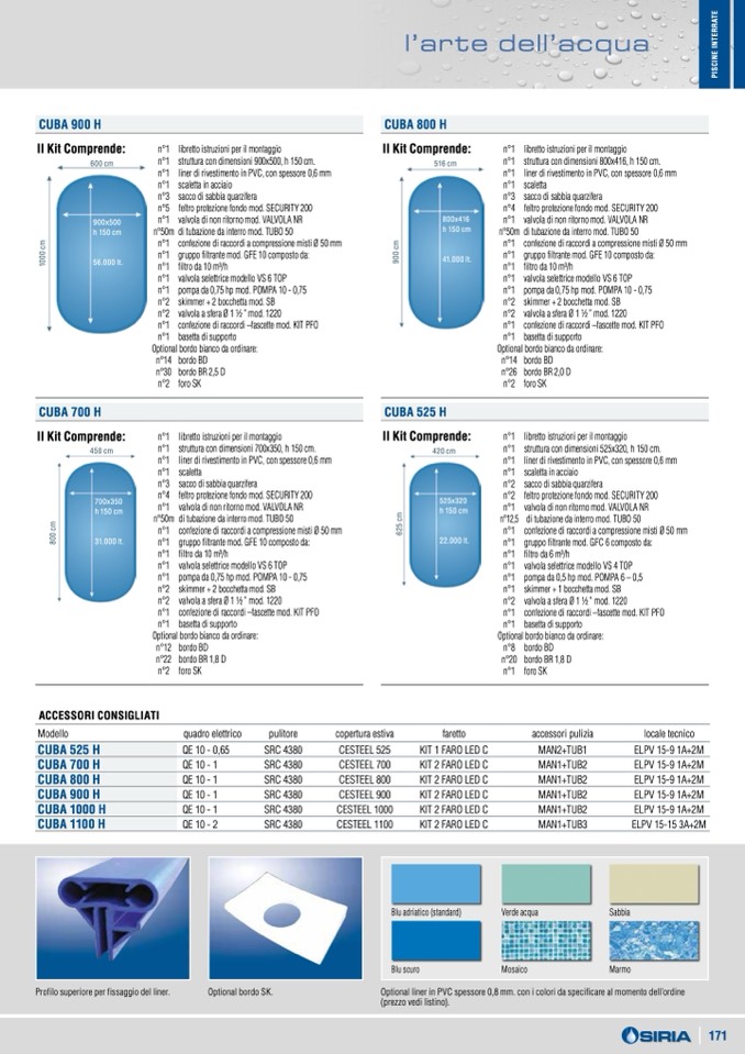 Optional liner in PVC spessore 0,8 mm. con i colori da specificare al momento dell’ordine
