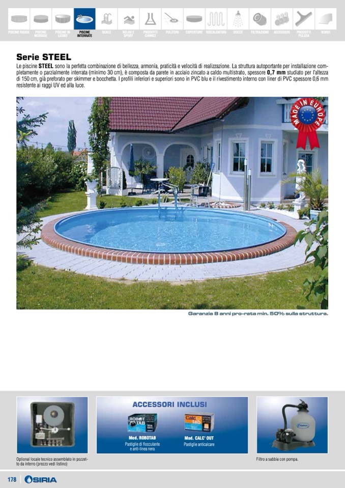 Garanzia 8 anni pro-rata min. 50% sulla struttura.