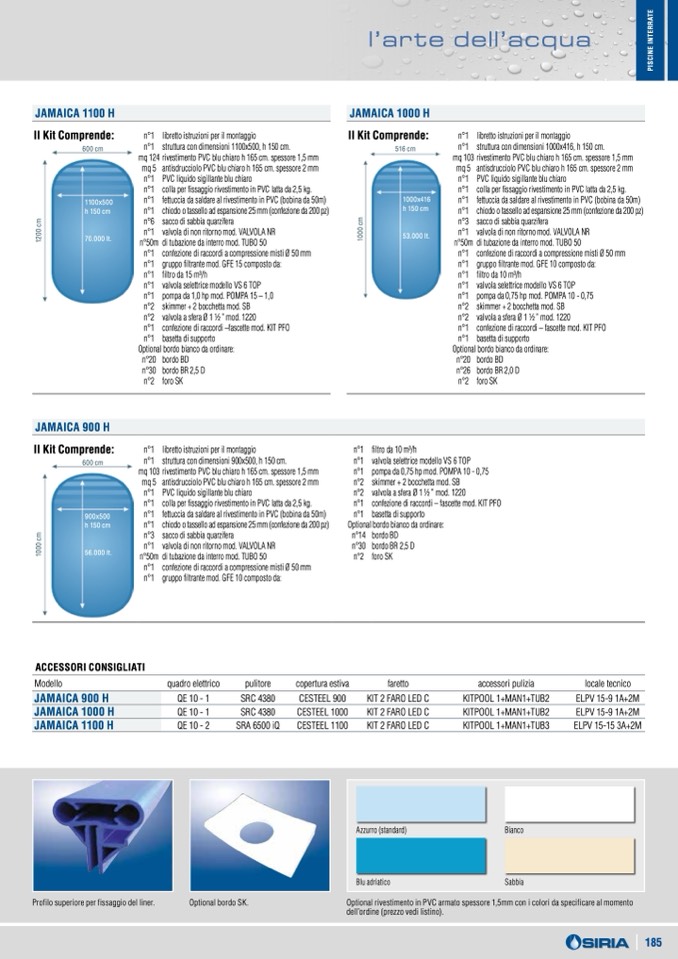Optional rivestimento in PVC armato spessore 1,5mm con i colori da specificare al momento