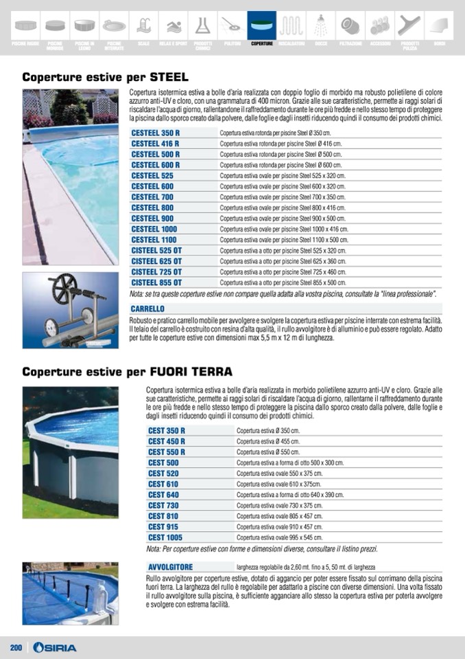 Nota: se tra queste coperture estive non compare quella adatta alla vostra piscina, consultate la “linea professionale”.