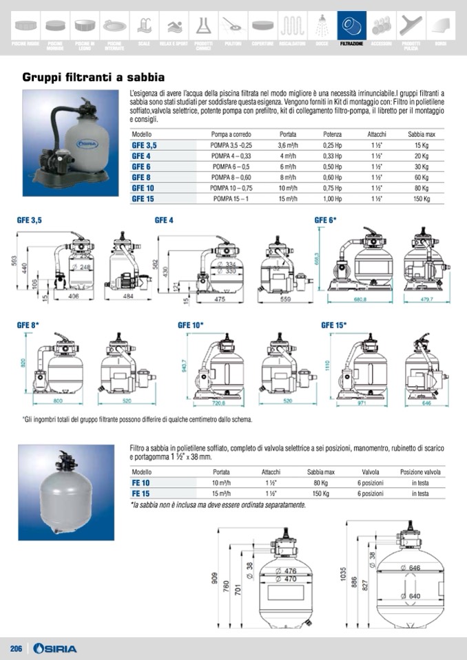 *Gli ingombri totali del gruppo filtrante possono differire di qualche cemtimetro dallo schema.