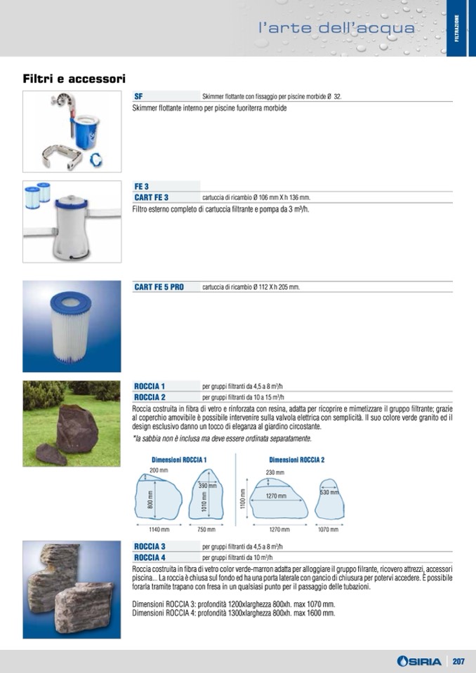 Roccia costruita in fibra di vetro e rinforzata con resina, adatta per ricoprire e mimetizzare il gruppo filtrante; grazie