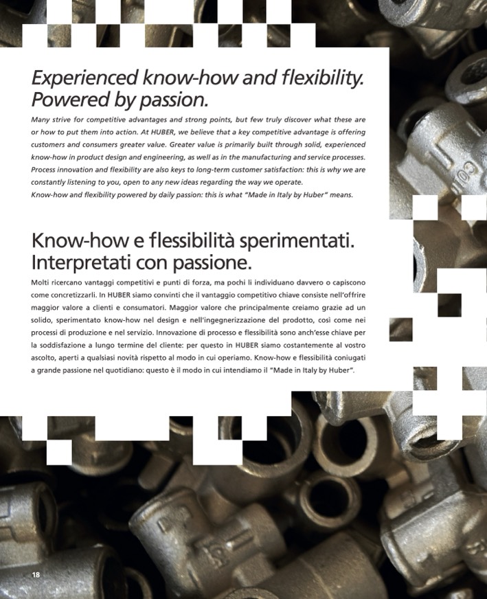 Know-how and flexibility powered by daily passion: this is what “Made in Italy by Huber” means.