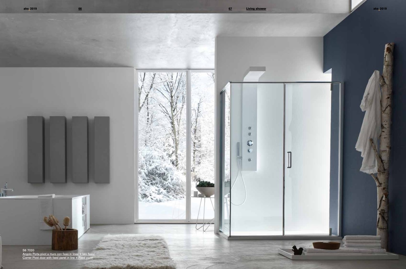 Angolo Porta pivot a muro con fisso in linea + lato fisso/