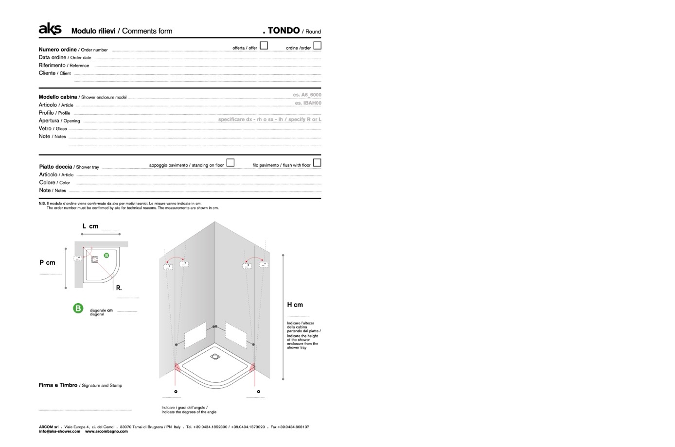 N.B. Il modulo d’ordine viene confermato da aks per motivi tecnici. Le misure vanno indicate in cm.