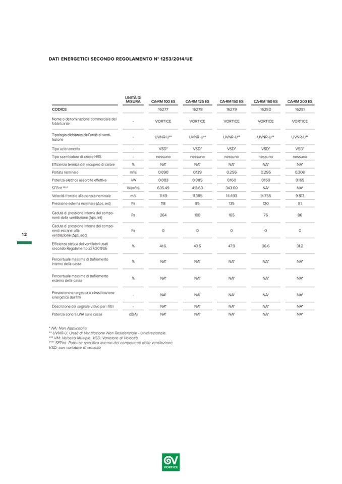 DATI ENERGETICI SECONDO REGOLAMENTO N° 1253/2014/UE