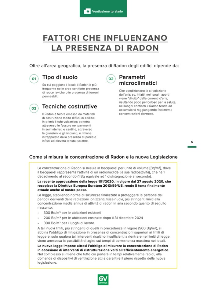 Oltre all’area geografica, la presenza di Radon degli edifici dipende da: