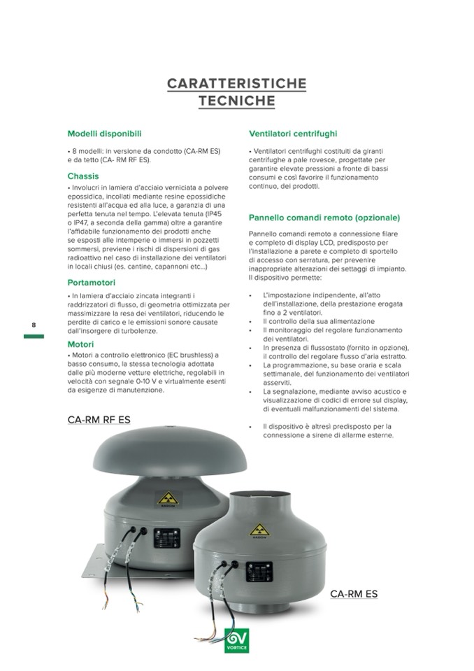 • 8 modelli: in versione da condotto (CA-RM ES)