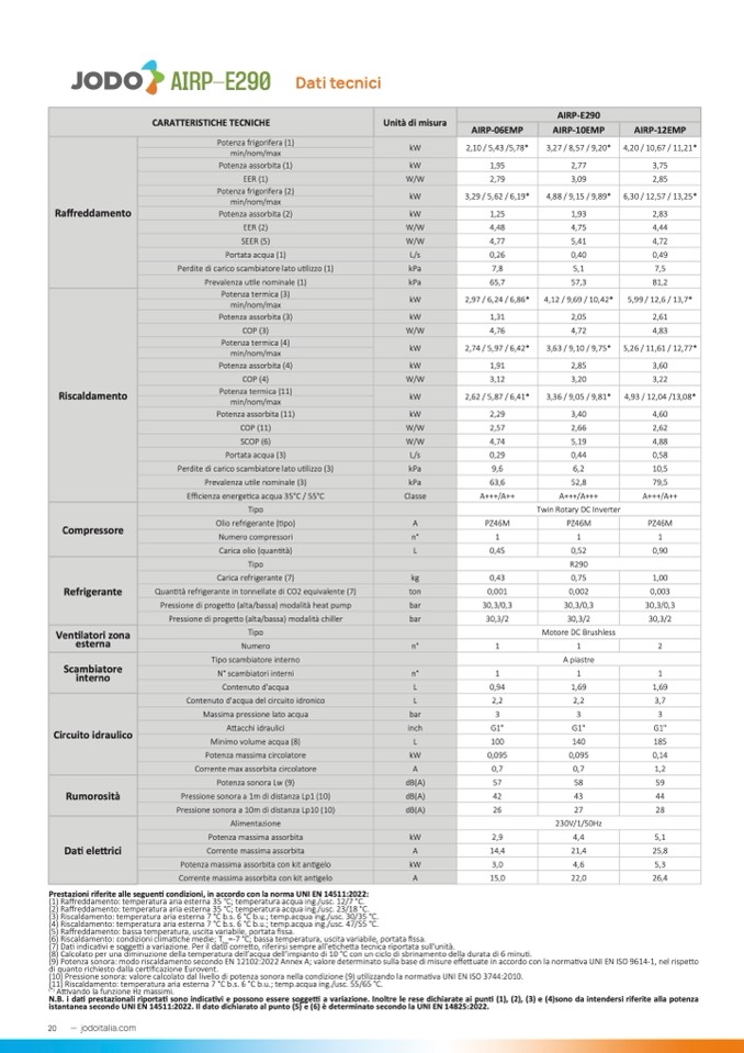 (1) Raffreddamento: temperatura aria esterna 35 °C; temperatura acqua ing./usc. 12/7 °C.