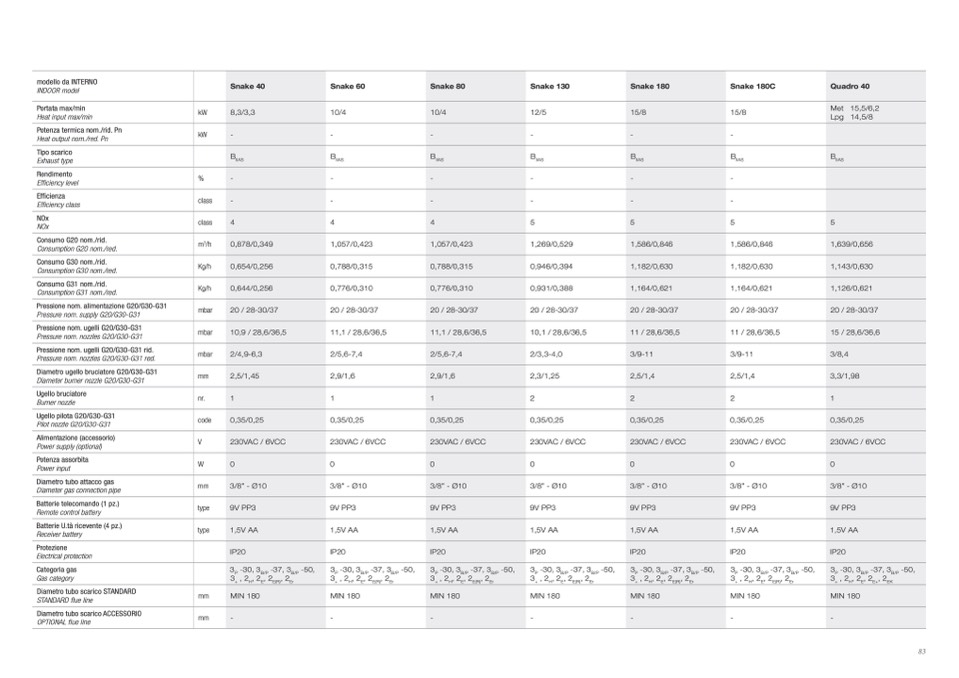Pressione nom. ugelli G20/G30-G31