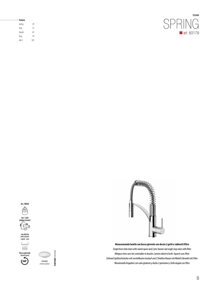 Monocomando lavello con bocca girevole con doccia 2 getti e rubinetti filtro