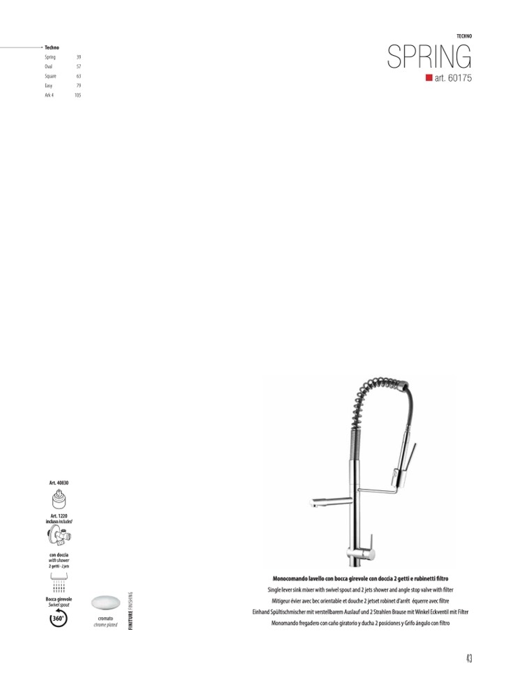 Monocomando lavello con bocca girevole con doccia 2 getti e rubinetti filtro