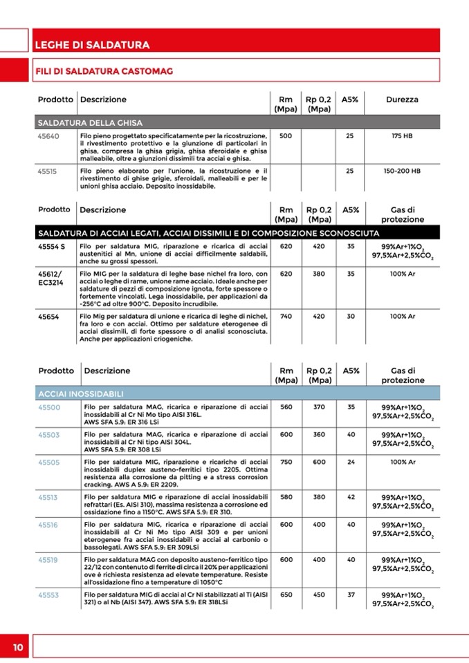 Filo per saldatura MAG con deposito austeno-ferritico tipo