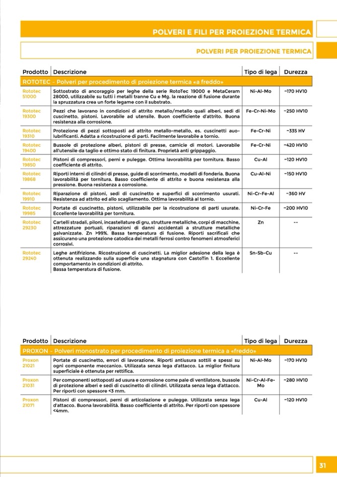 ROTOTEC – Polveri per procedimento di proiezione termica «a freddo»