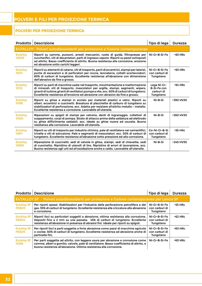 EUTALLOY– Polveri autodisossidanti per proiezione e fusione contemporanea