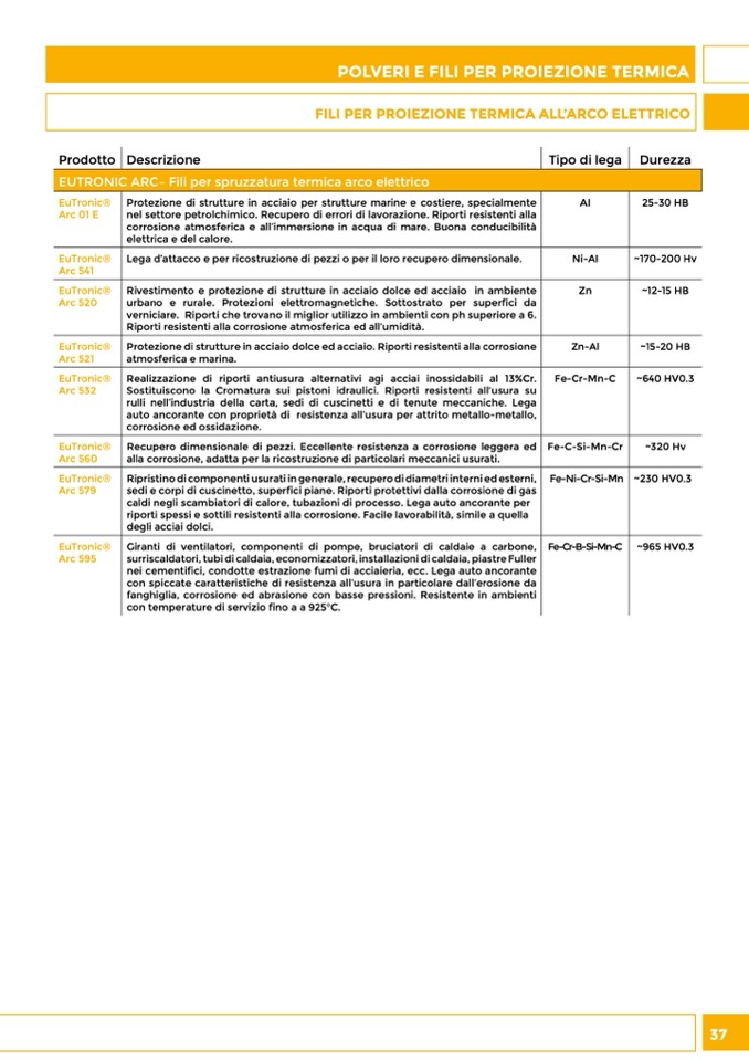 EUTRONIC ARC– Fili per spruzzatura termica arco elettrico