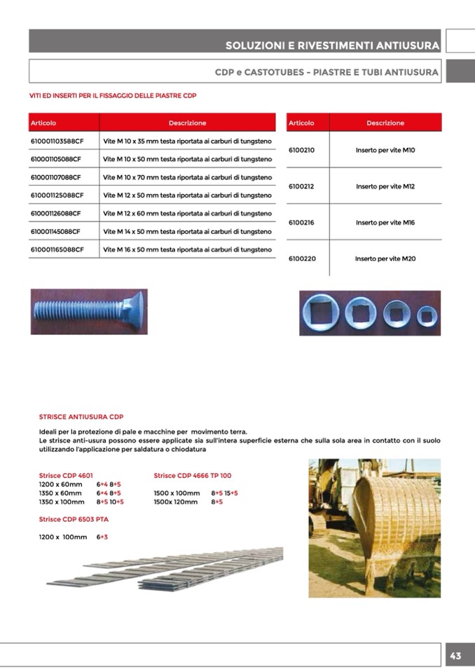 VITI ED INSERTI PER IL FISSAGGIO DELLE PIASTRE CDP