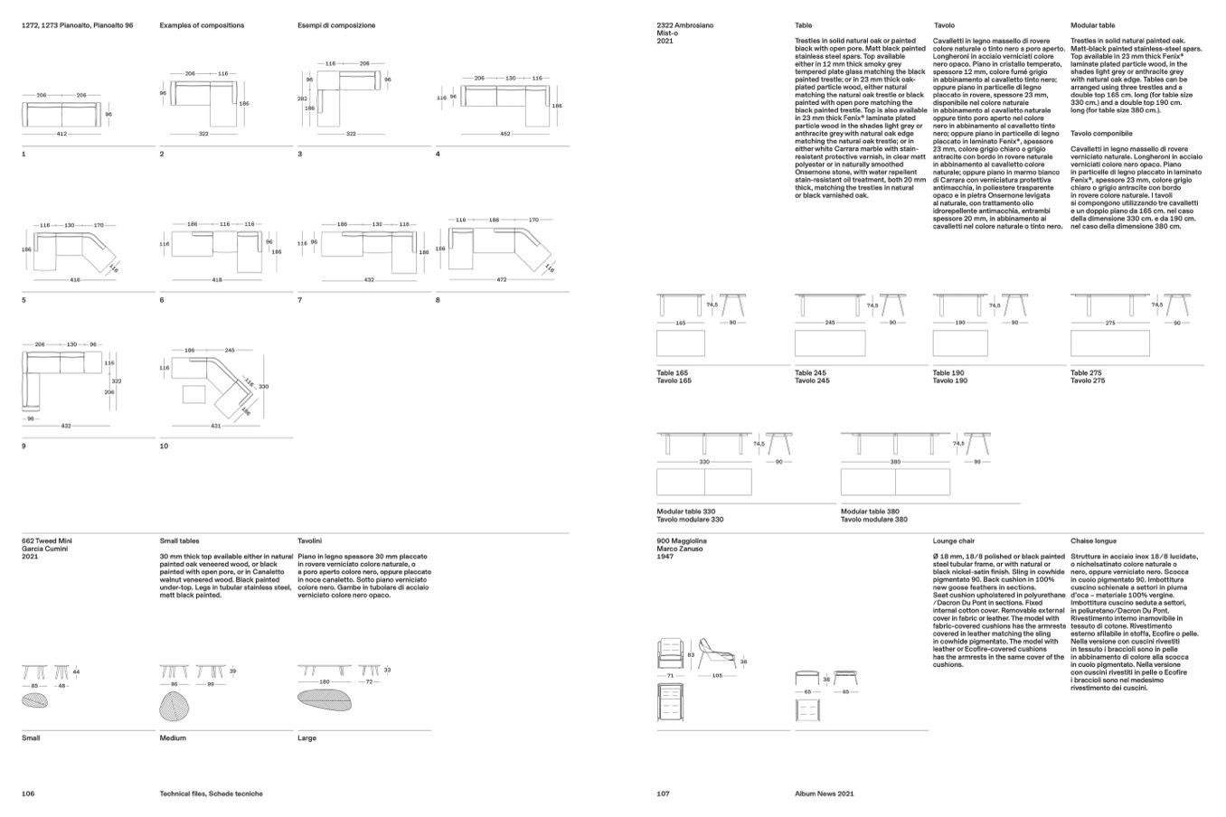 in rovere colore naturale. I tavoli