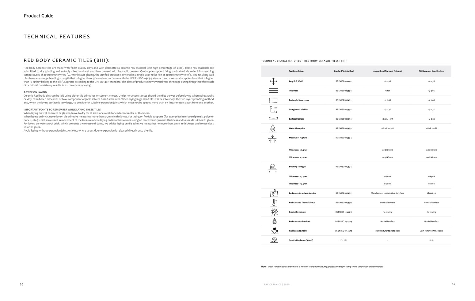 TECHNICAL CHARACTERISTICS - RED BODY CERAMIC TILES (BIII)