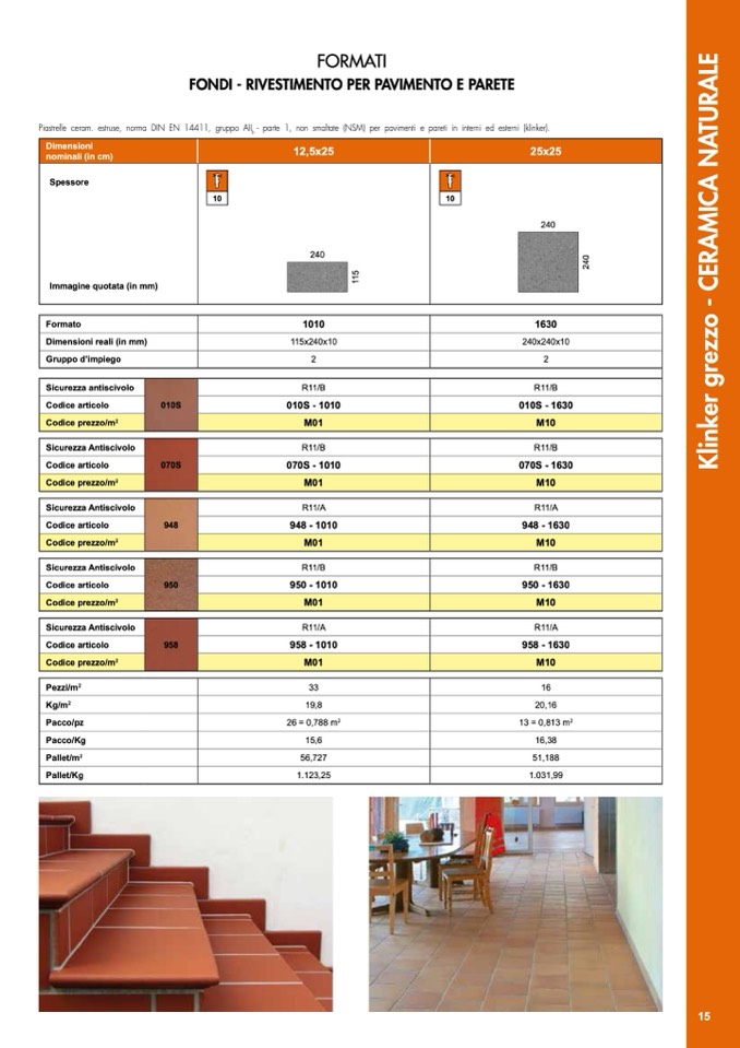 - parte 1, non smaltate (NSM) per pavimenti e pareti in interni ed esterni (klinker).