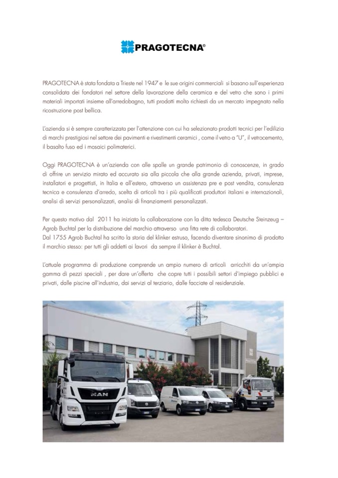 PRAGOTECNA è stata fondata a Trieste nel 1947 e le sue origini commerciali si basano sull’esperienza
