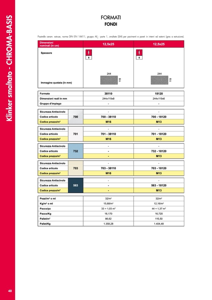 - parte 1, smaltate (SM) per pavimenti e pareti in interni ed esterni (gres a estrusione).