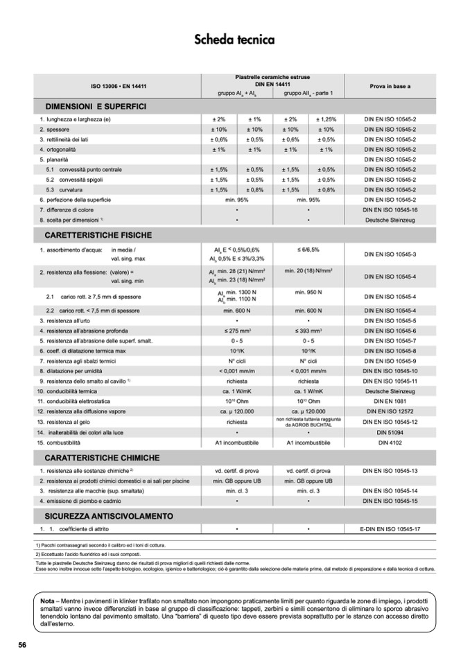 Nota – Mentre i pavimenti in klinker tra