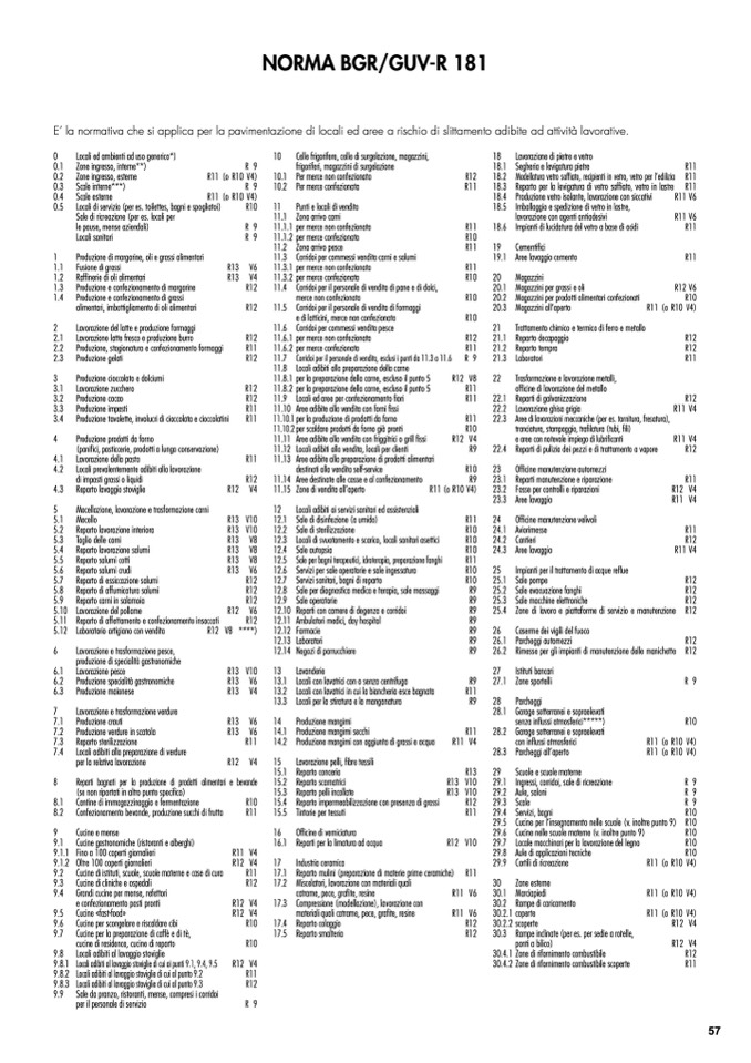 E’ la normativa che si applica per la pavimentazione di locali ed aree a rischio di slittamento adibite ad attività lavorative.