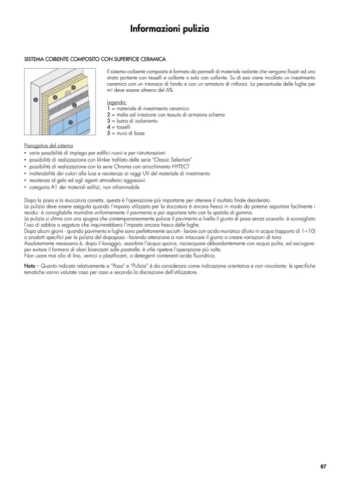 Nota – Quanto indicato relativamente a ”Posa” e “Pulizia” è da considerarsi come indicazione orientativa e non vincolante: le specifiche