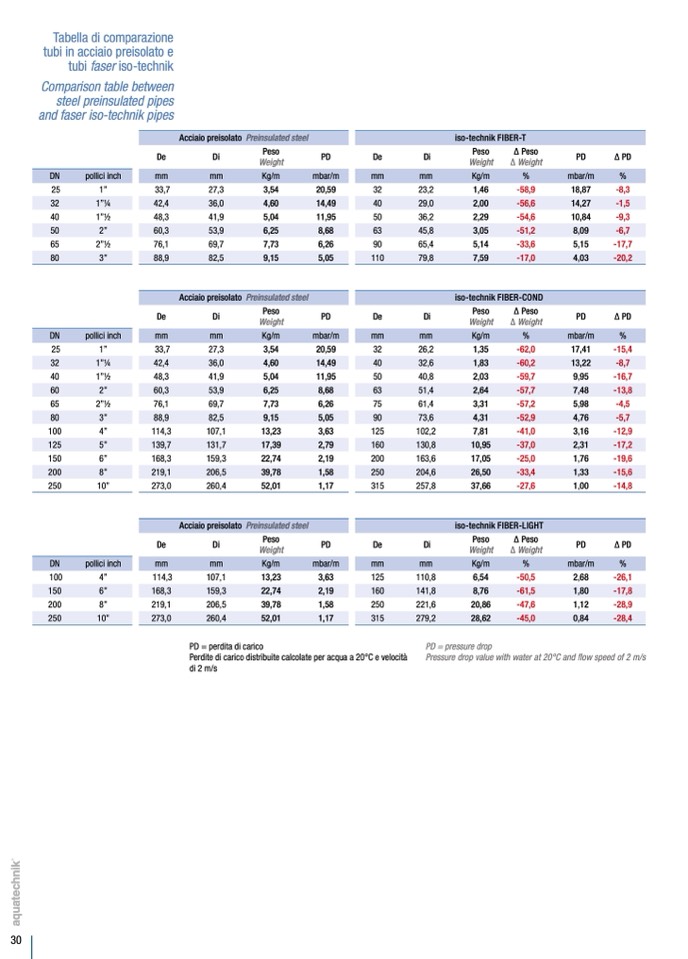 Pressure drop value with water at 20°C and flow speed of 2 m/s