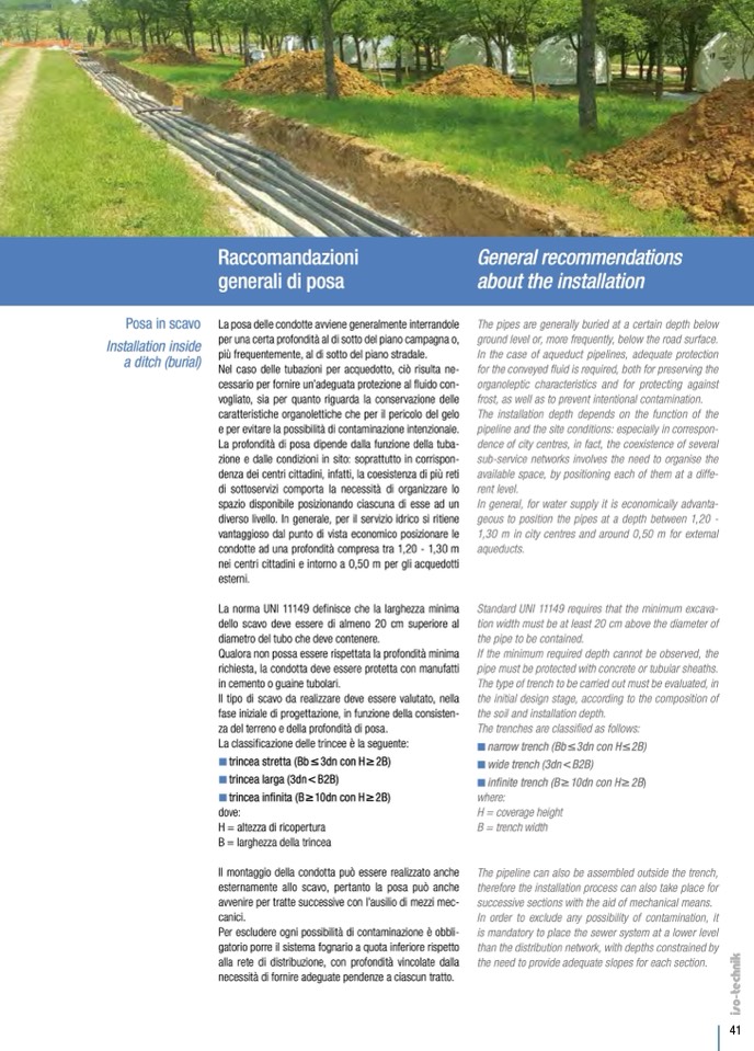 nei centri cittadini e intorno a 0,50 m per gli acquedotti