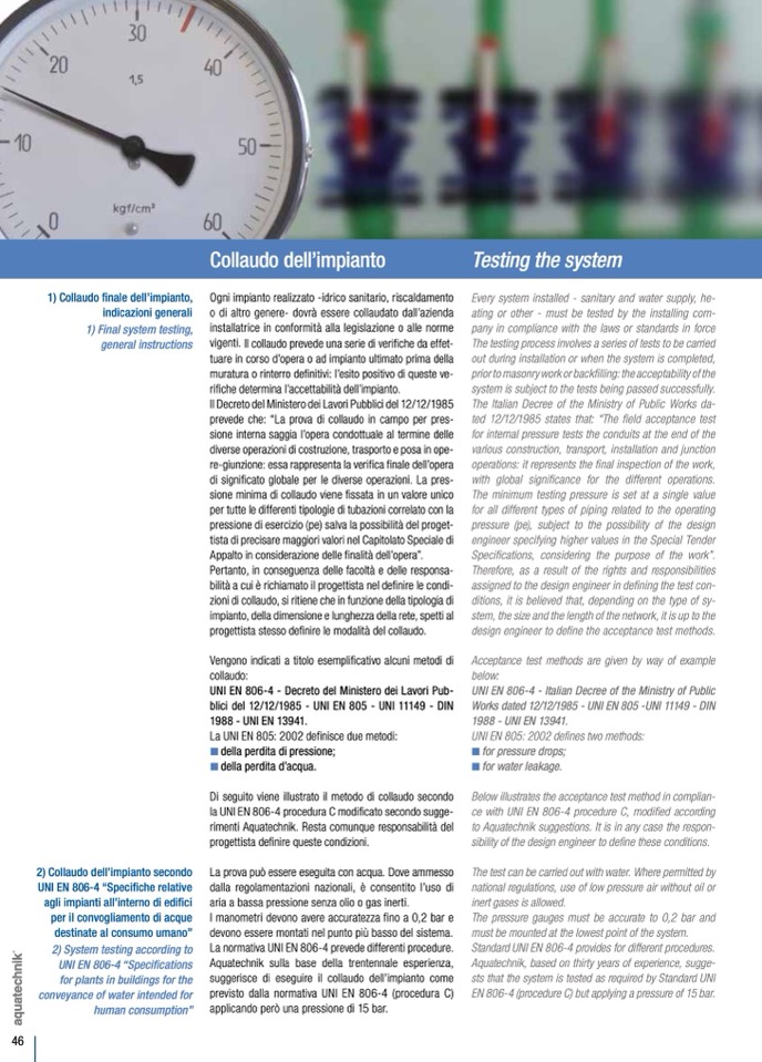 Works dated 12/12/1985 - UNI EN 805 -UNI 11149 - DIN