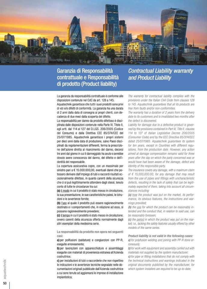 to 145. Aquatechnik guarantees that all its products are