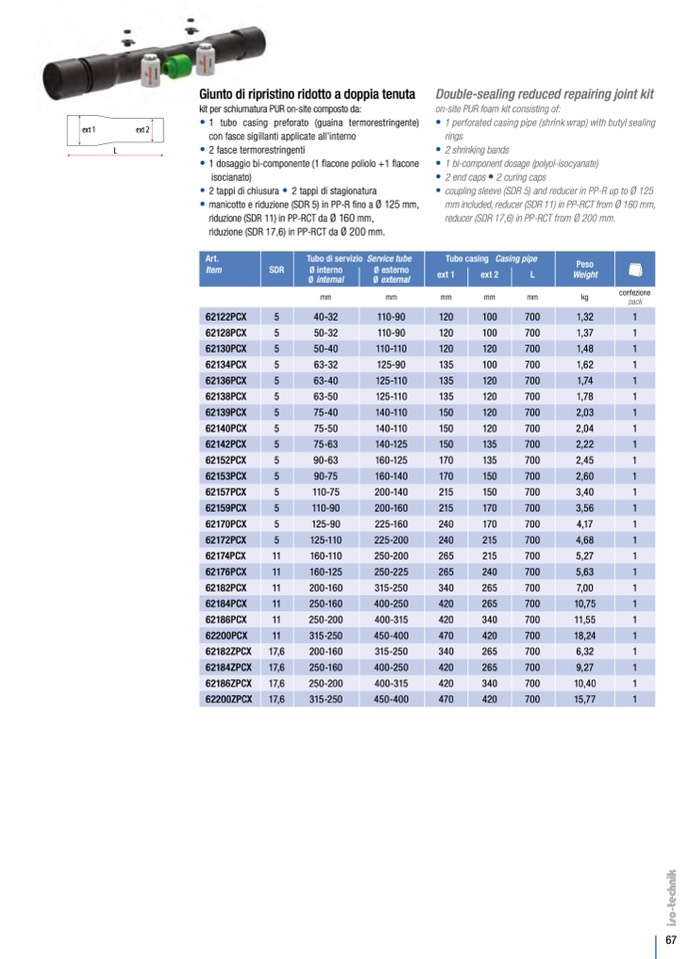 riduzione (SDR 17,6) in PP-RCT da Ø 200 mm.