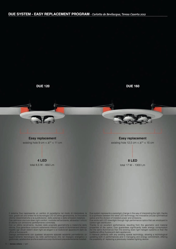 rispetto agli attuali sistemi down light ad alogeni o ai tradizionali apparecchi dark da