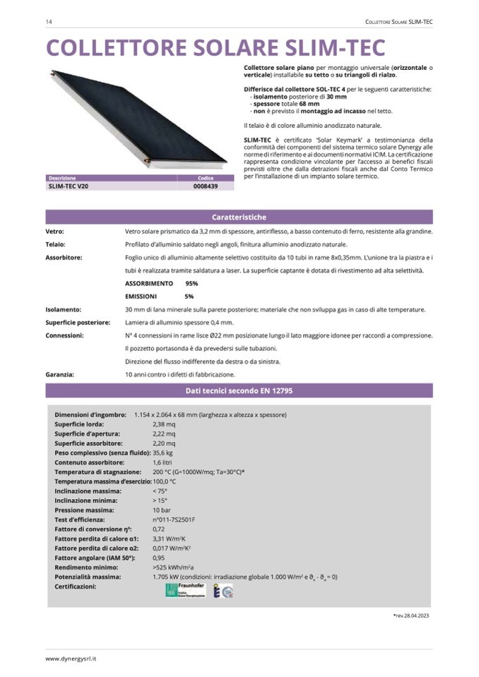 SLIM-TEC è certificato ‘Solar Keymark’ a testimonianza della