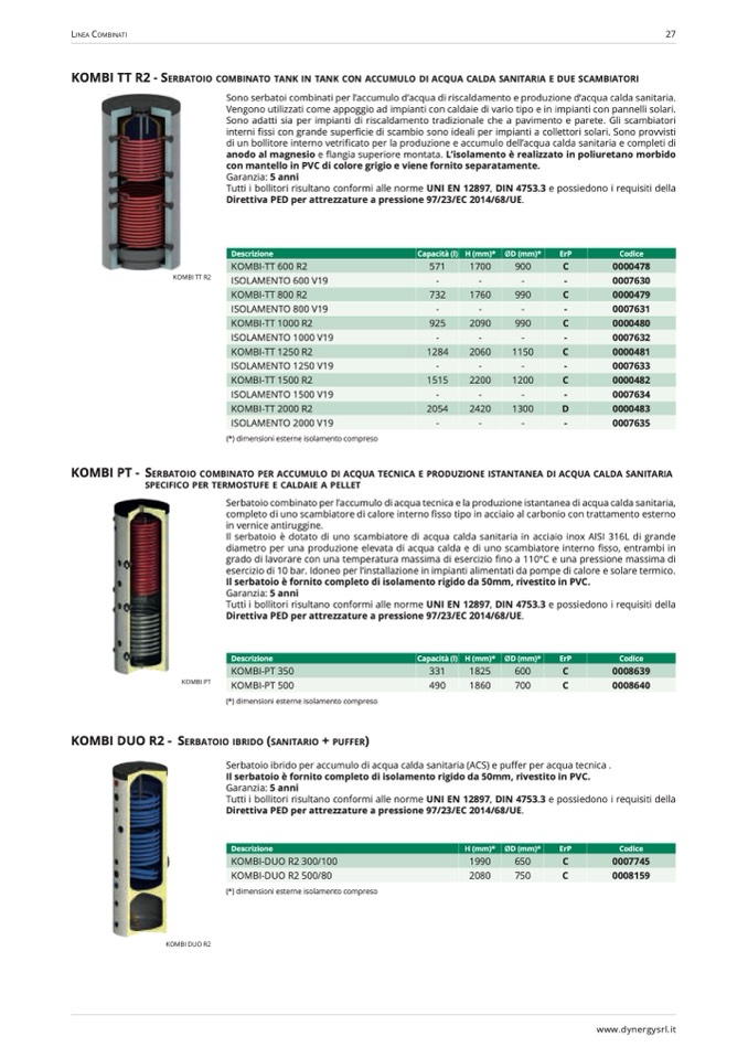 Tutti i bollitori risultano conformi alle norme UNI EN 12897, DIN 4753.3 e possiedono i requisiti della